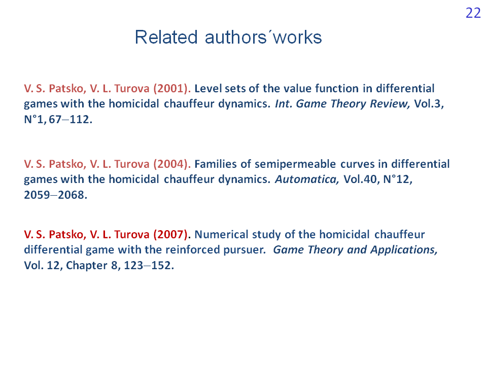 The differential game with such dynamics was called the acoustic homicidal chauffeur game. Different target sets were considered, also in the form of a rectangle stretched along the horizontal axis